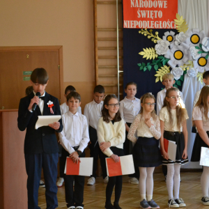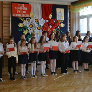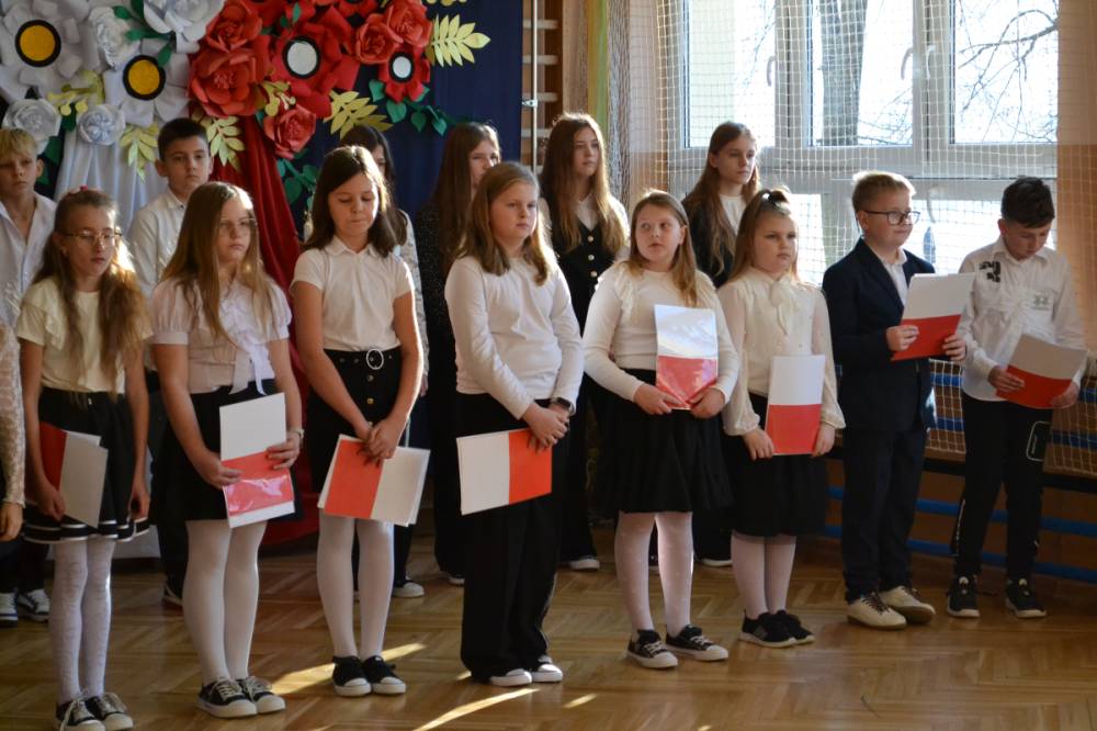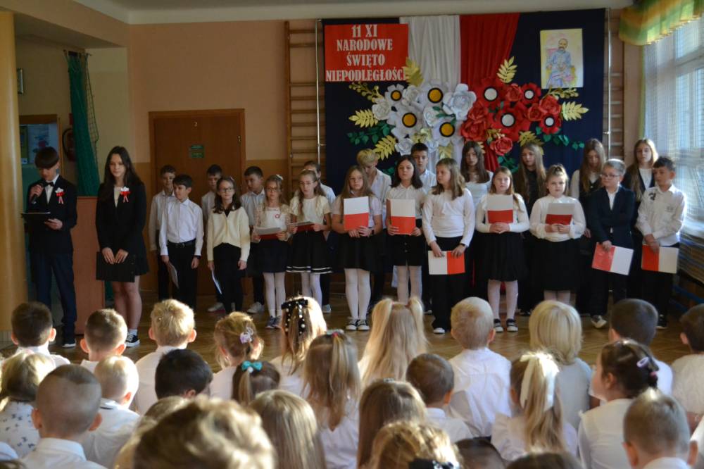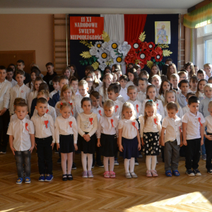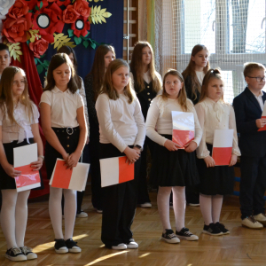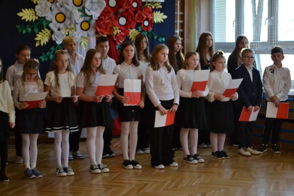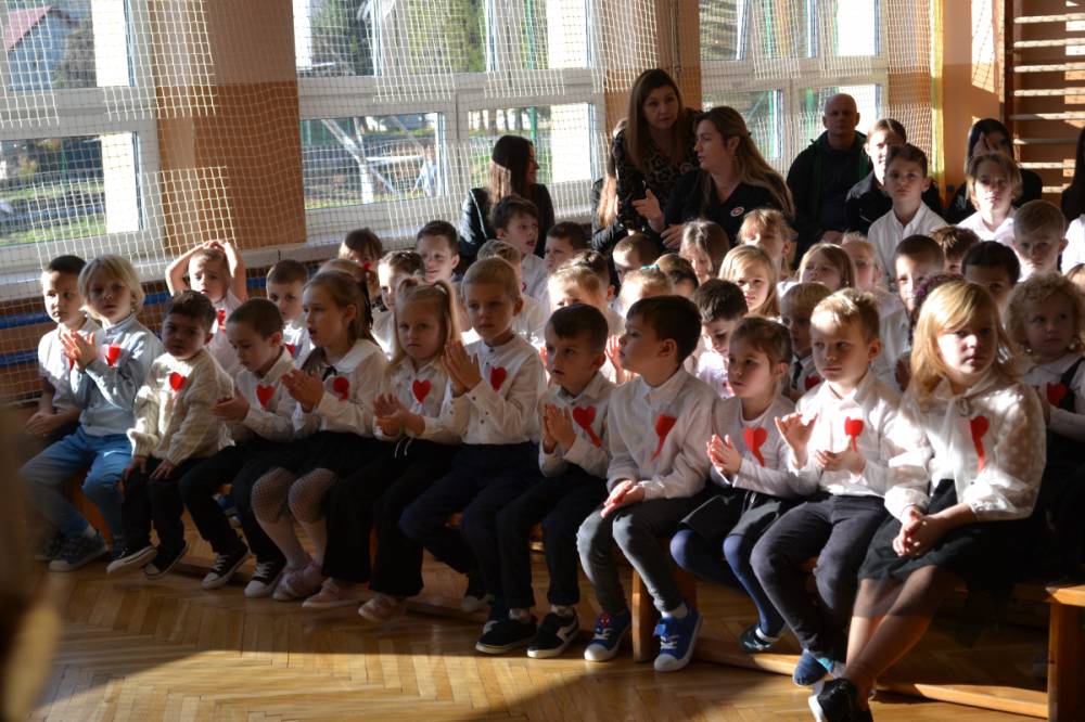 Zaczęliśmy już w czwartek uroczystą Akademią z okazji Święta Niepodległości podczas której dzieci z klasy ósmej oraz nasz szkolny Chór przeprowadziły nas wojskową pieśnią przez najważniejsze momenty całego procesu odzyskiwania niepodległości przez Polskę. Przedszkolaki natomiast zatańczyły z szarfami do melodii znanej nam wszystkim z serialu „Dom”. To był niezwykle wzruszający koncert…
