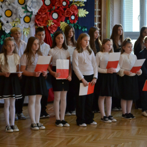Tradycyjnie wzięliśmy również udział w akcji „Szkoła do hymnu”. Wszyscy, od najmłodszego przedszkolaka do ósmoklasisty stanęli ramię w ramię i odśpiewali głośno i z dumą Hymn Polski.