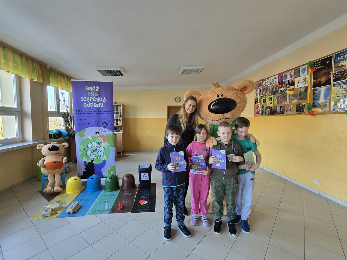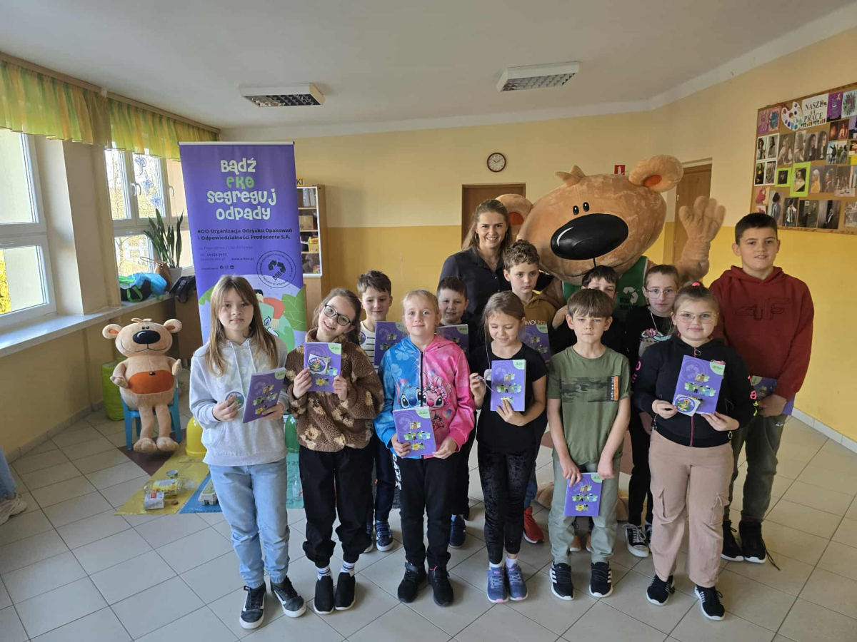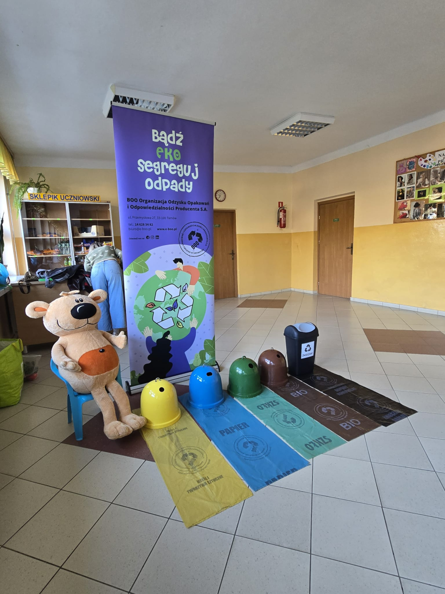 Dnia 3 grudnia 2025 r. gościliśmy w naszej szkole przedstawicieli BOO – Organizacji Odzysku Opakowań i Odpowiedzialności Producenta S.A. z Tarnowa, którzy poprowadzili dla uczniów klas I–III ekologiczne warsztaty pod nazwą „Bądź Eko – segreguj odpady!”.