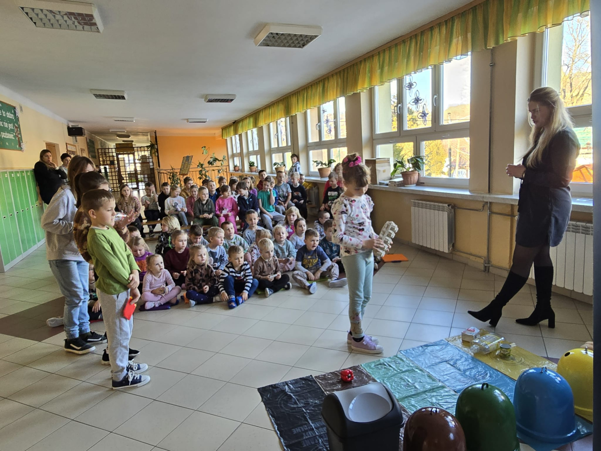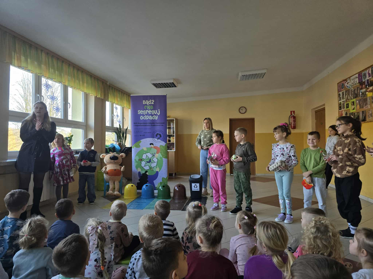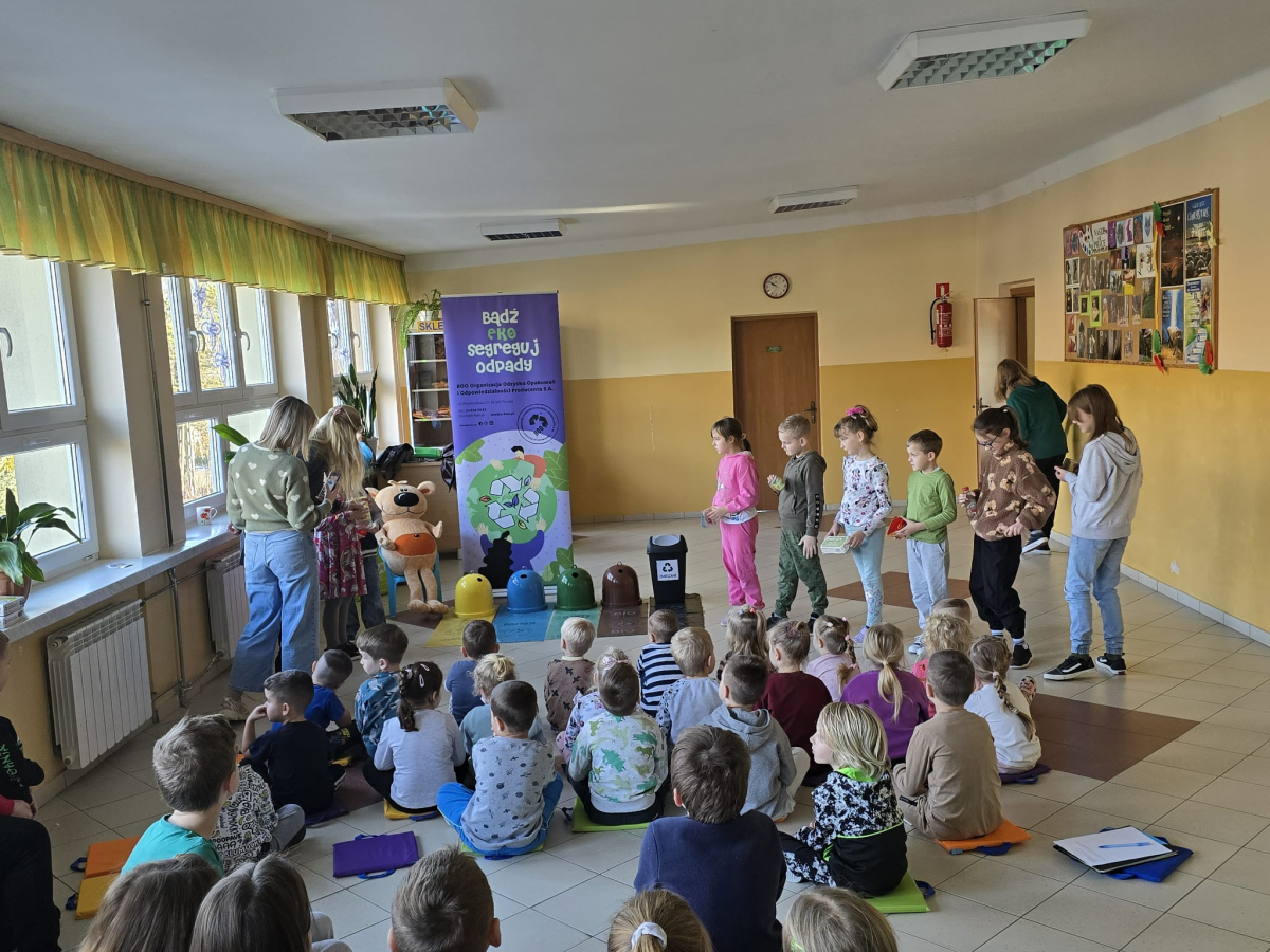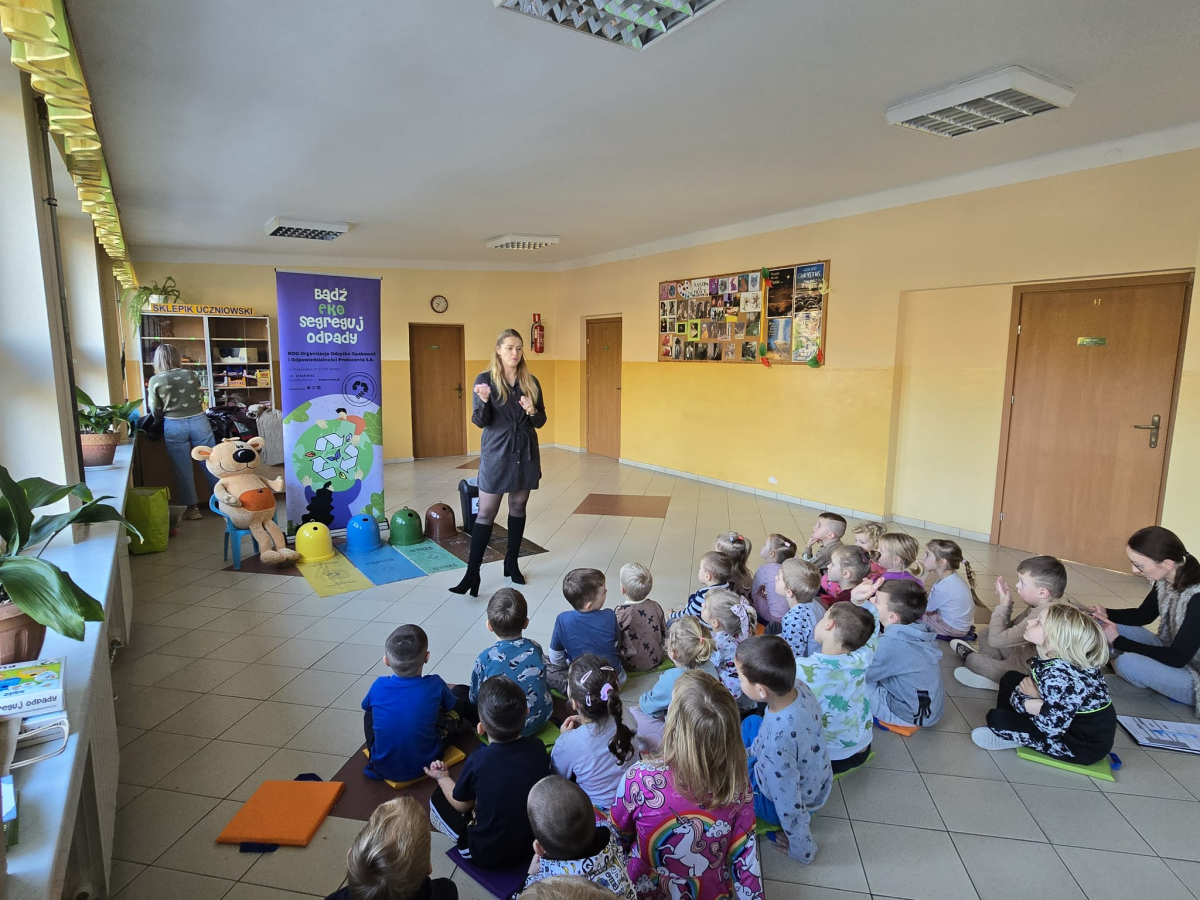 Dnia 3 grudnia 2025 r. gościliśmy w naszej szkole przedstawicieli BOO – Organizacji Odzysku Opakowań i Odpowiedzialności Producenta S.A. z Tarnowa, którzy poprowadzili dla uczniów klas I–III ekologiczne warsztaty pod nazwą „Bądź Eko – segreguj odpady!”.