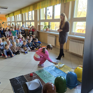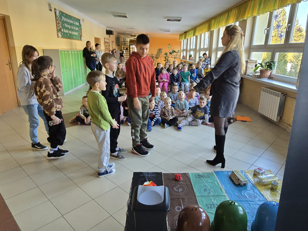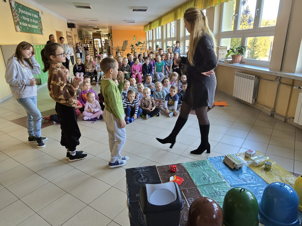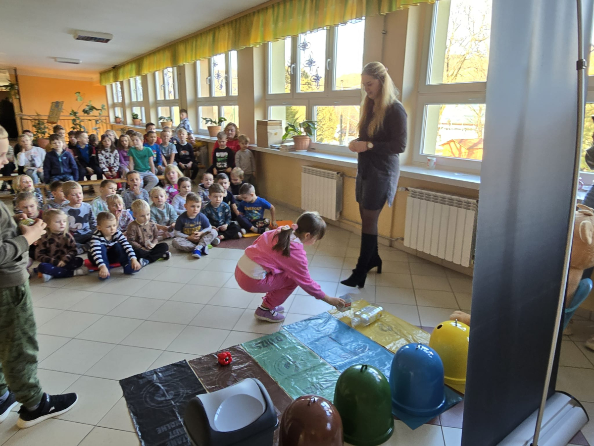 Zajęcia były prowadzone w formie doświadczalnej, co pozwoliło dzieciom aktywnie uczestniczyć w ćwiczeniach i lepiej zrozumieć zasady prawidłowej segregacji odpadów. Największą atrakcją była wizyta misia Sortusia, który wspierał uczniów w nauce poprzez zabawę.