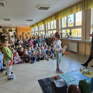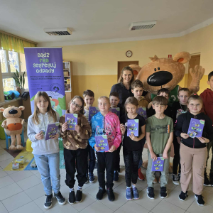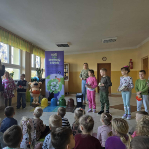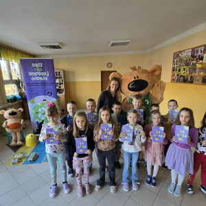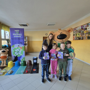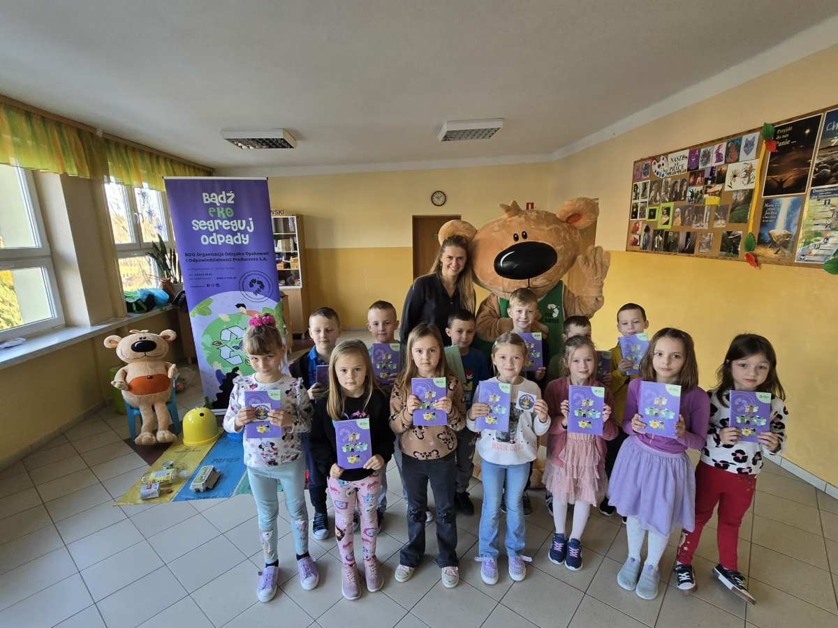 Na zakończenie wszyscy wspólnie nauczyli się piosenki o segregacji śmieci, a każdy uczeń otrzymał pamiątkowy zeszyt.