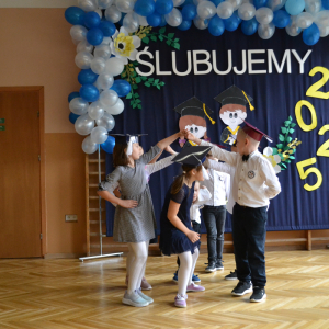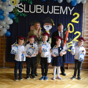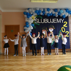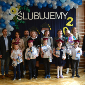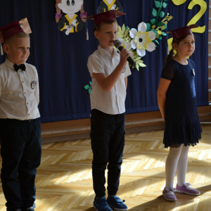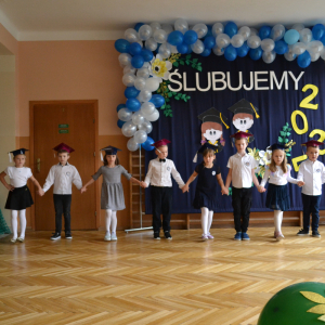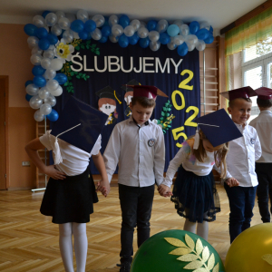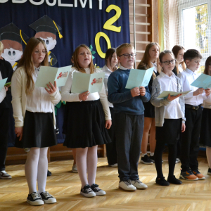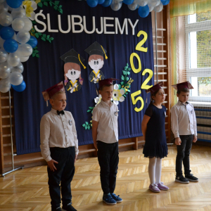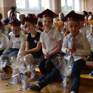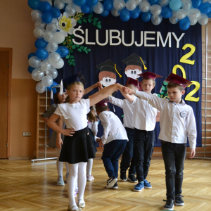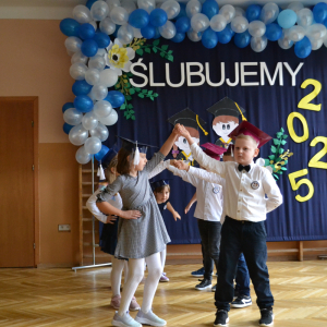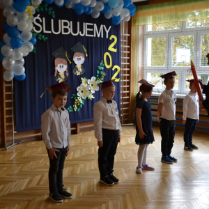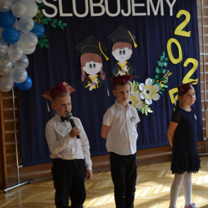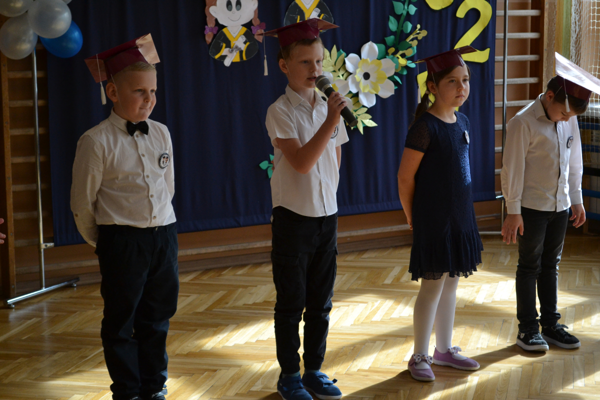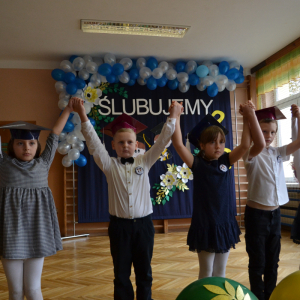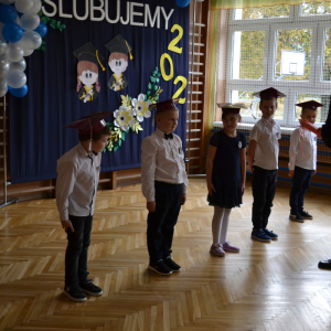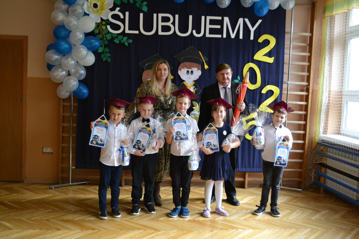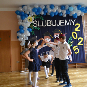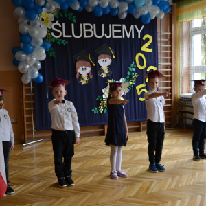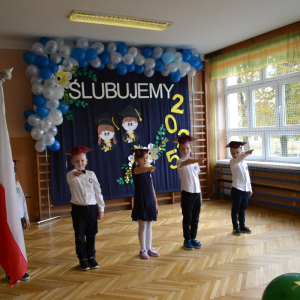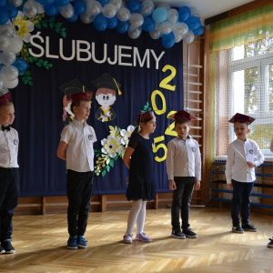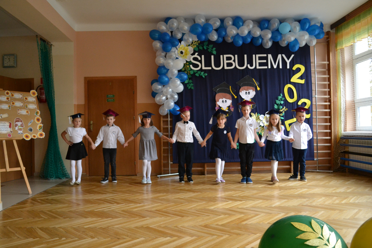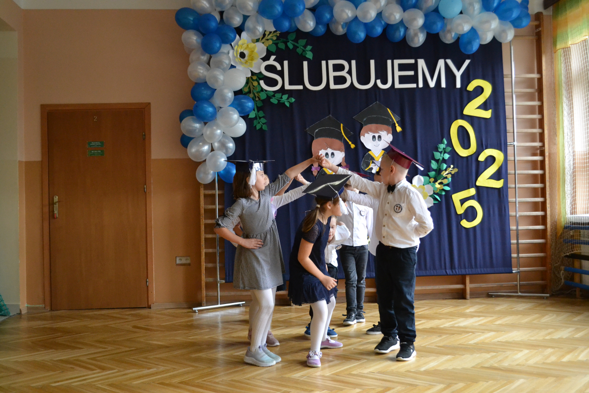 Na zakończenie tej części uroczystości uczniowie klasy I, przy akompaniamencie muzyki, zaprezentowali uroczysty taniec – poloneza, który wzbudził ogromne wzruszenie wśród zgromadzonych rodziców, nauczycieli i gości. Później nastąpiła najbardziej oczekiwana chwila – ślubowanie i pasowanie na ucznia, którego dokonał Pan Dyrektor, Stanisław Pater, używając symbolicznego ołówka.
