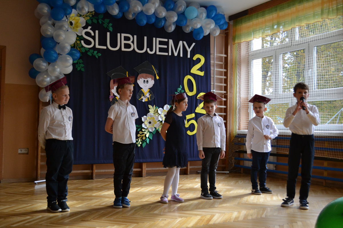Wydarzenie rozpoczęło się od części artystycznej w wykonaniu pierwszoklasistów, którzy z ogromnym zaangażowaniem recytowali wiersze i śpiewali piosenki o koleżeństwie i nowej szkolnej rzeczywistości. Z entuzjazmem zaprezentowali także swoje pierwsze umiejętności zdobyte w szkole.