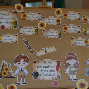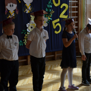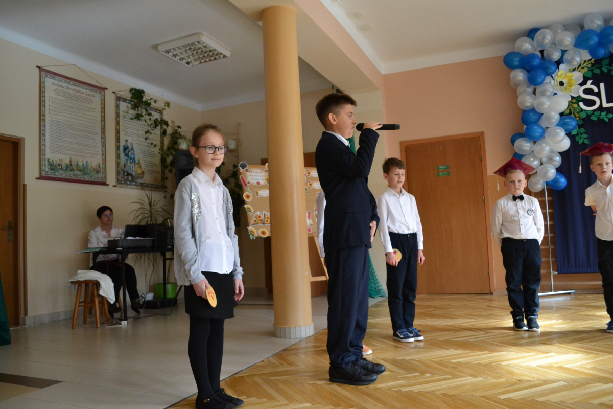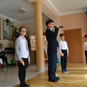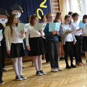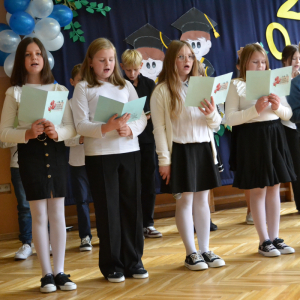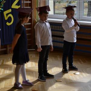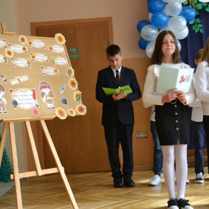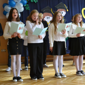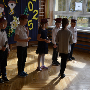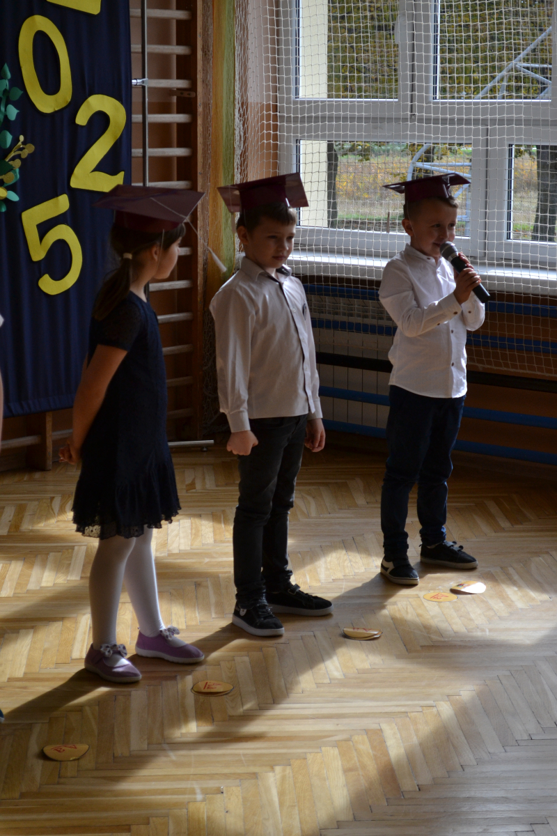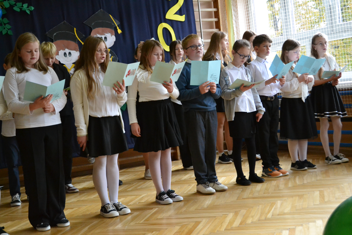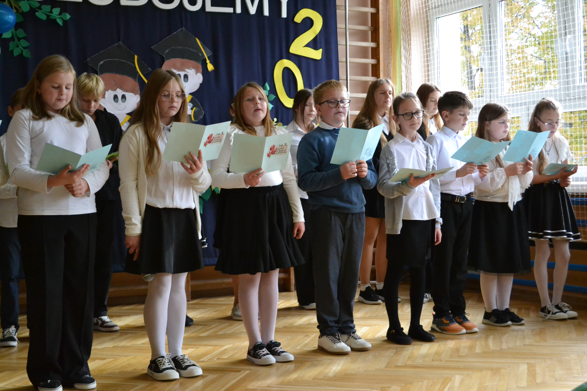 Po ślubowaniu nadszedł czas na drugą część uroczystości – akademię z okazji Dnia Edukacji Narodowej, przygotowaną przez uczniów klasy IV. W programie znalazły się wiersze i piosenki pełne wdzięczności dla nauczycieli i pracowników szkoły.