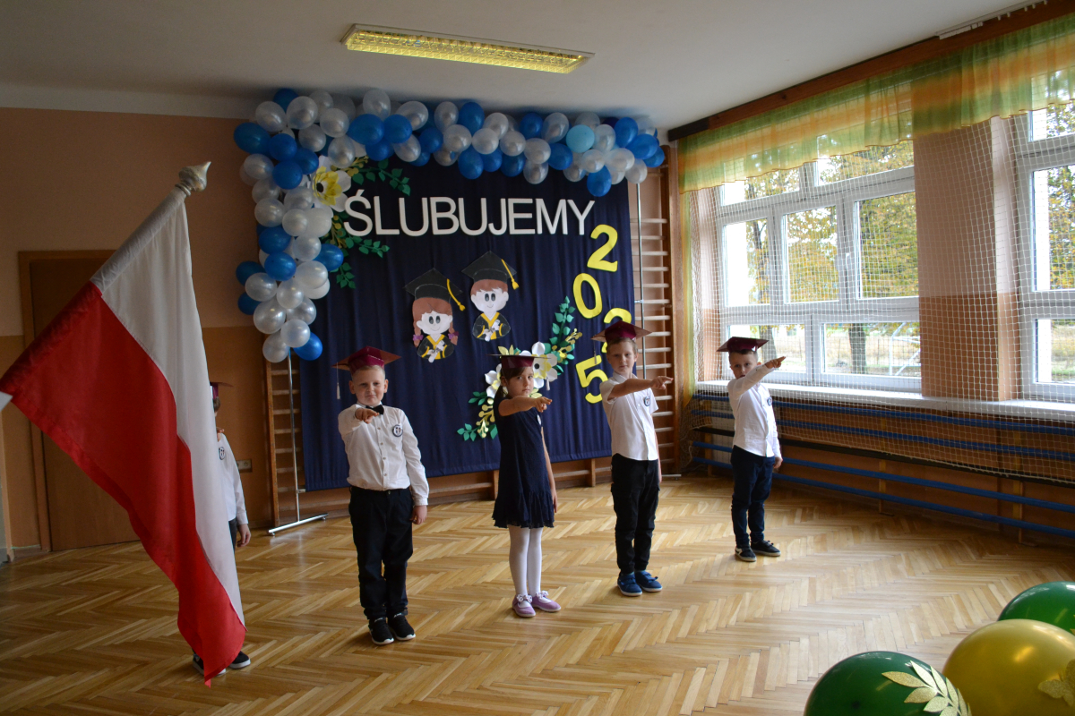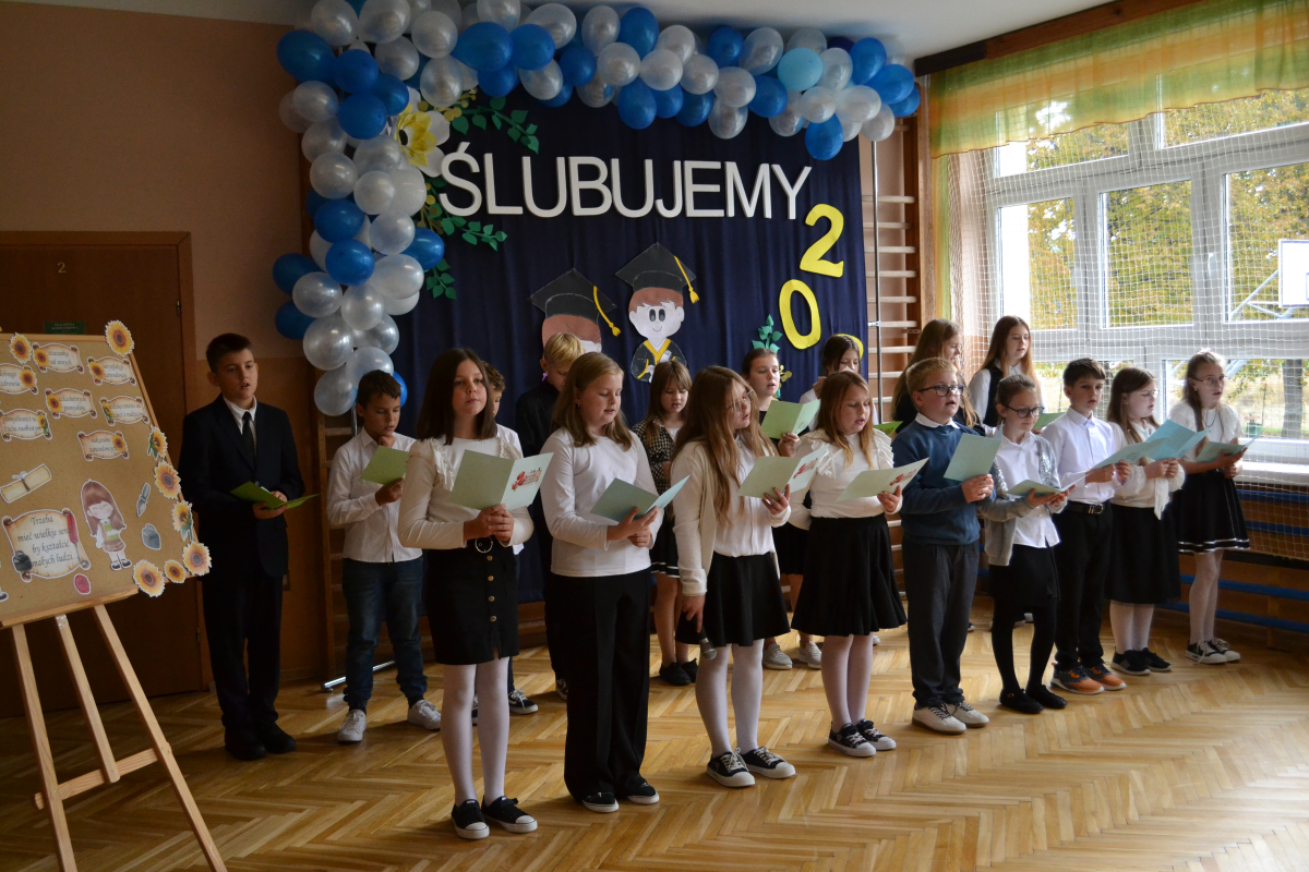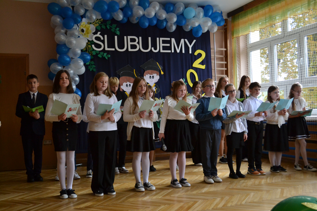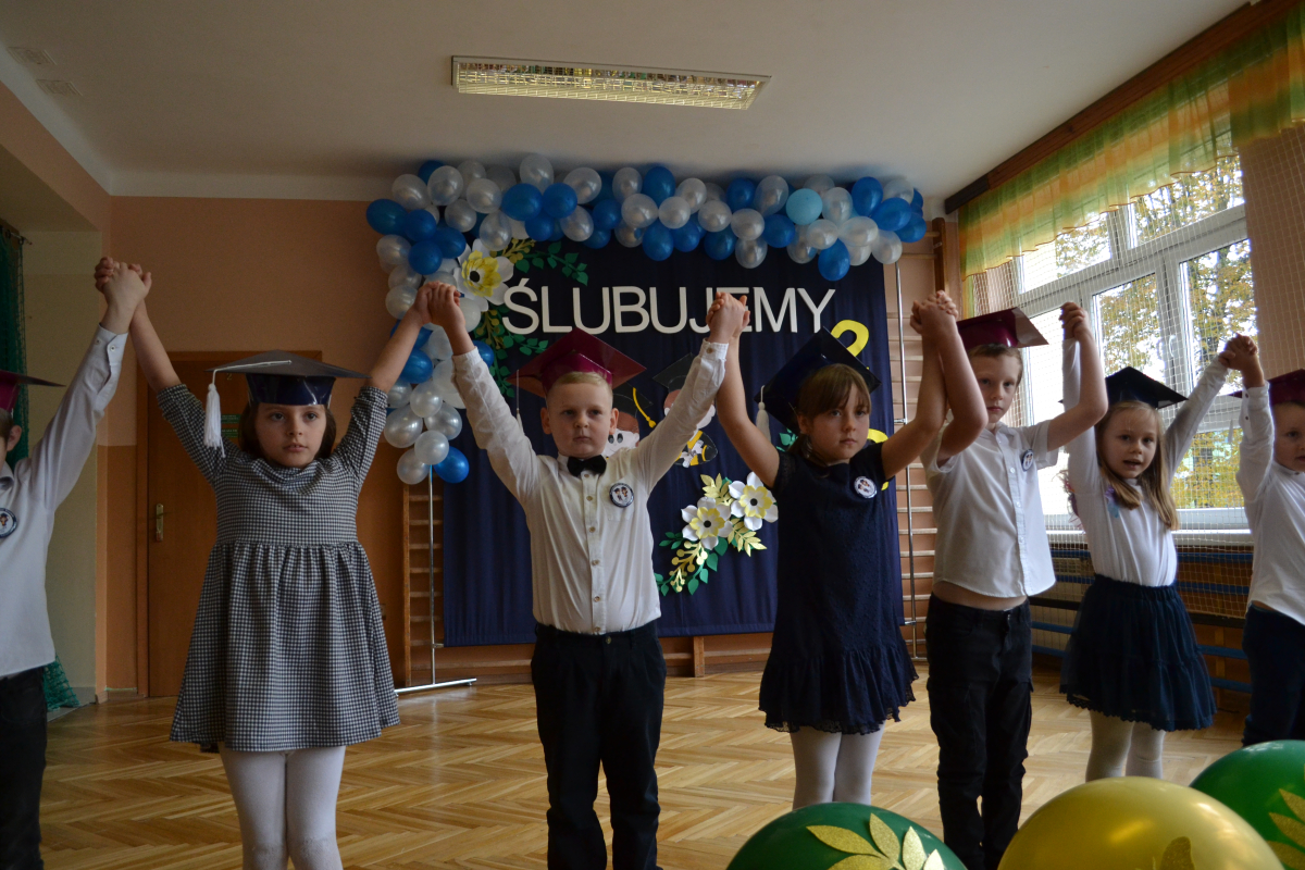 Dzień 14 października pozostanie na długo w pamięci naszych najmłodszych uczniów. Tego dnia odbyła się podwójna uroczystość: Ślubowanie klasy I połączone z akademią z okazji Dnia Edukacji Narodowej.