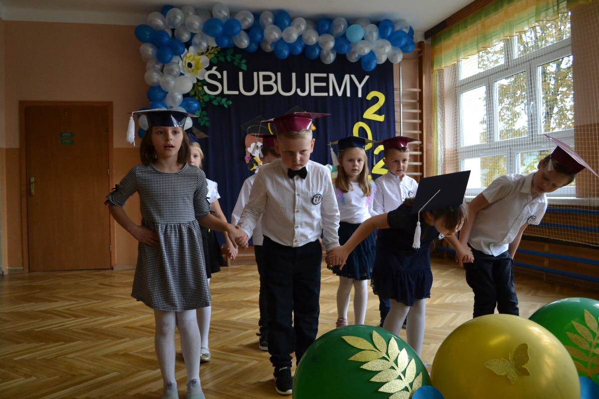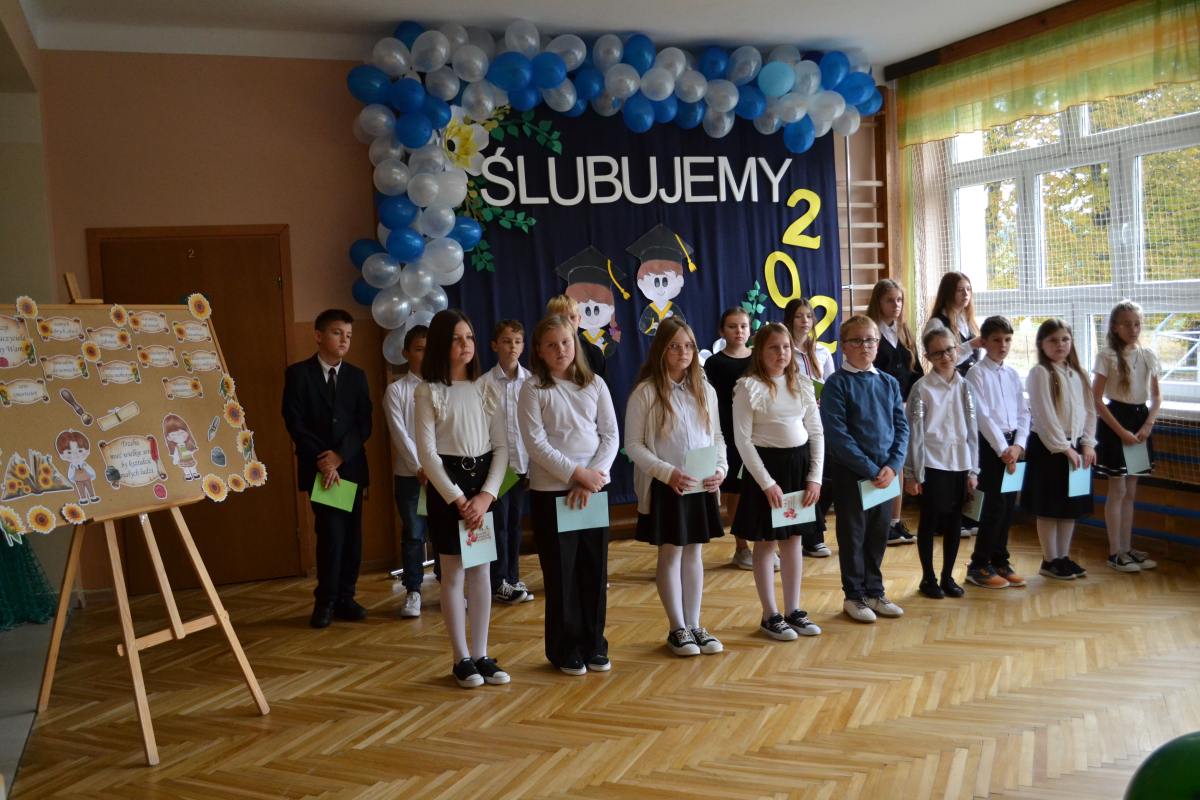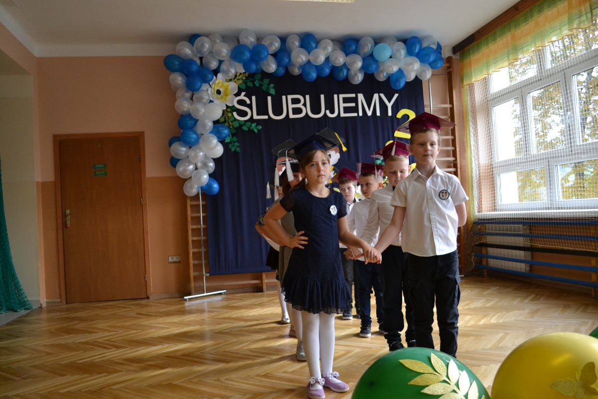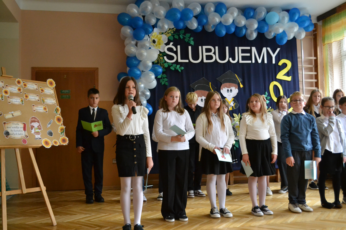 Dzień 14 października pozostanie na długo w pamięci naszych najmłodszych uczniów. Tego dnia odbyła się podwójna uroczystość: Ślubowanie klasy I połączone z akademią z okazji Dnia Edukacji Narodowej.