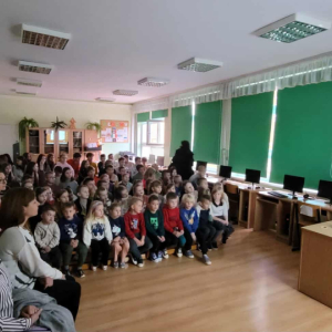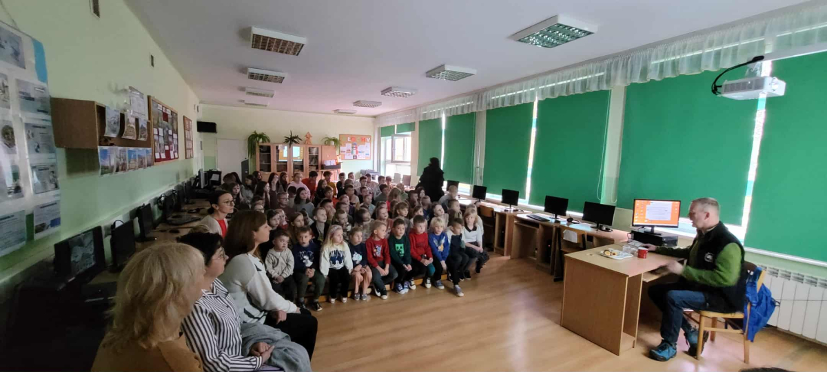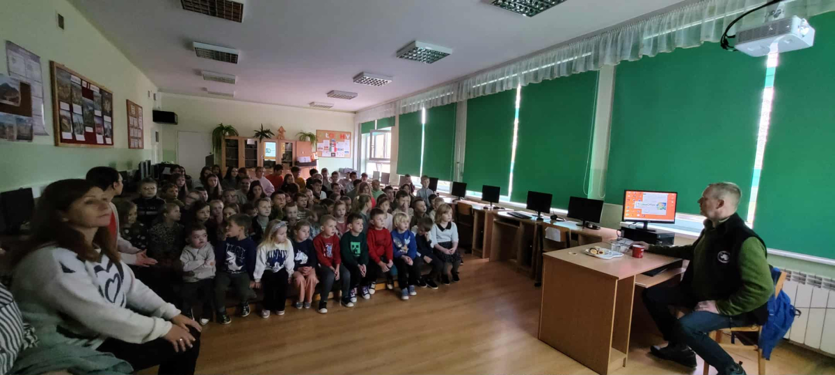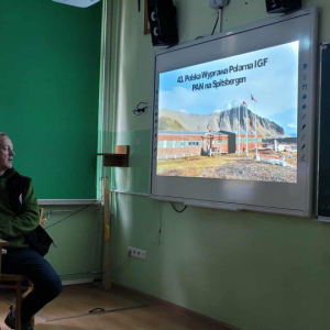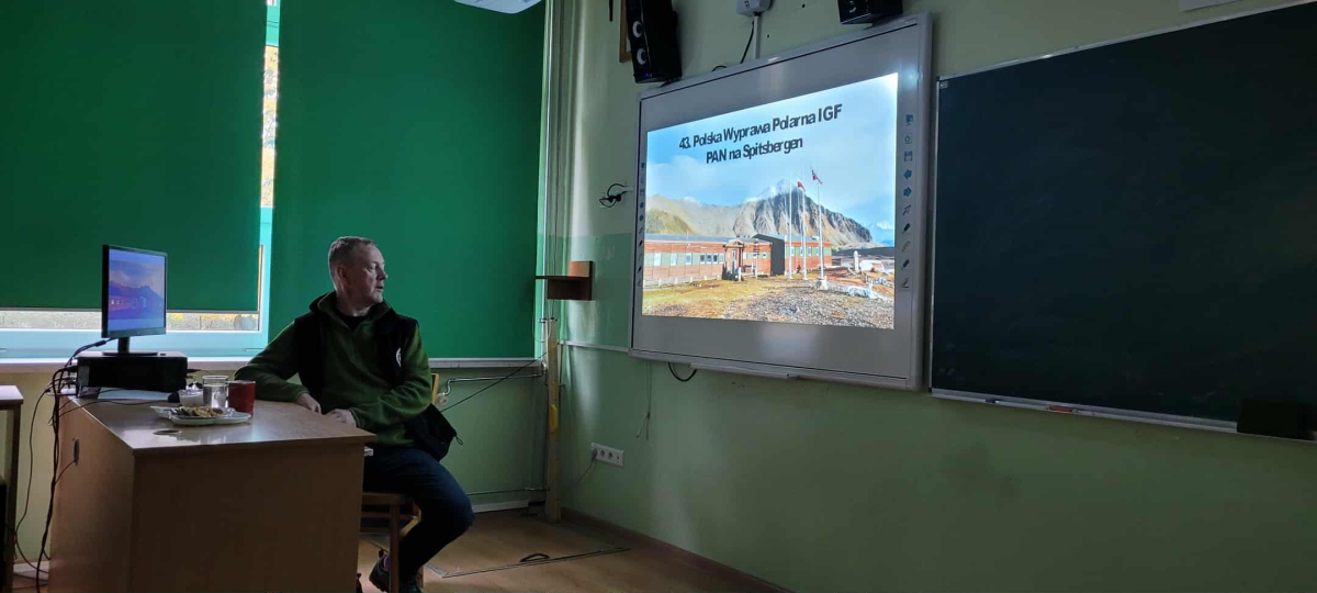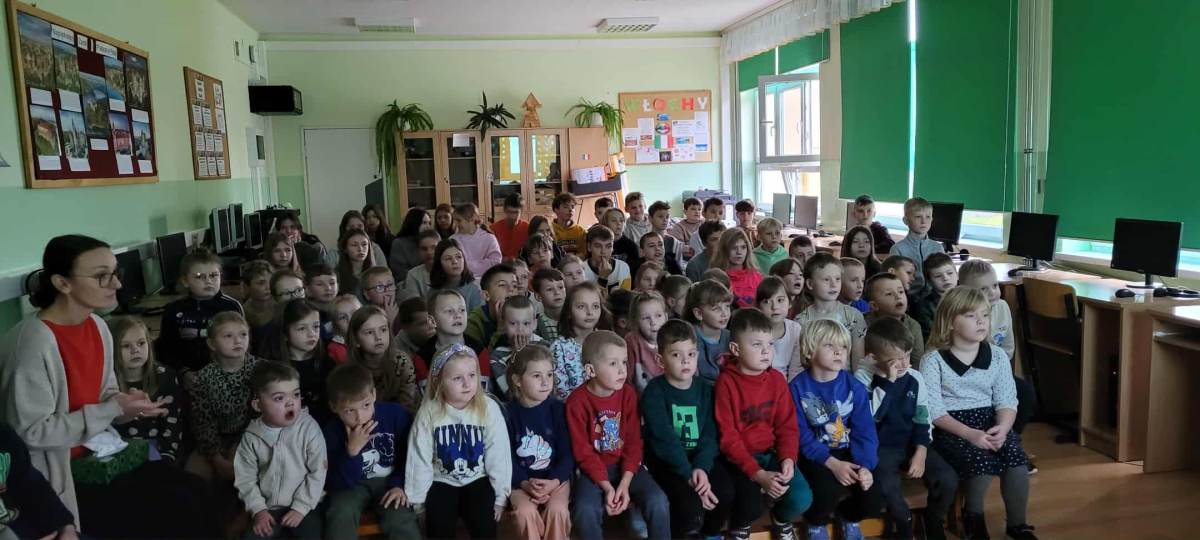 W środę, dnia 15 października 2025, gościliśmy w naszej szkole Pana Mariusza Czarnulę. Pan Mariusz, polarnik pracujący na stacjach badawczych na Antarktydzie i Arktyce, opowiadał uczniom naszej szkoły oraz przedszkola o swojej pracy oraz przygodach, jakie go tam spotkały. Wszystkie dzieci z zapartym tchem słuchały opowieści naszego gościa. Pan Mariusz uraczył nas również wieloma pięknymi zdjęciami, wykonanymi właśnie podczas swoich wypraw. Dzieci mogły podziwiać nie tylko cudowne krajobrazy, ale również wiele wyjątkowych zwierząt, jak na przykład morsy, niedźwiedzie czy lisy polarne, a nawet renifery! Nie obyło się również bez pytań zaciekawionej publiczności, na które nasz gość chętnie odpowiadał.