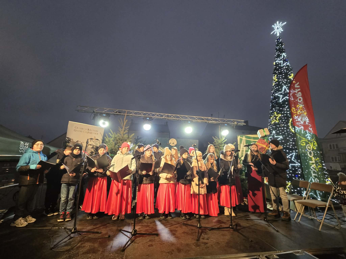 Świąteczne kolędowanie naszego chóru szkolnego podczas II Jarmarku Bożonarodzeniowego w Ciężkowicach