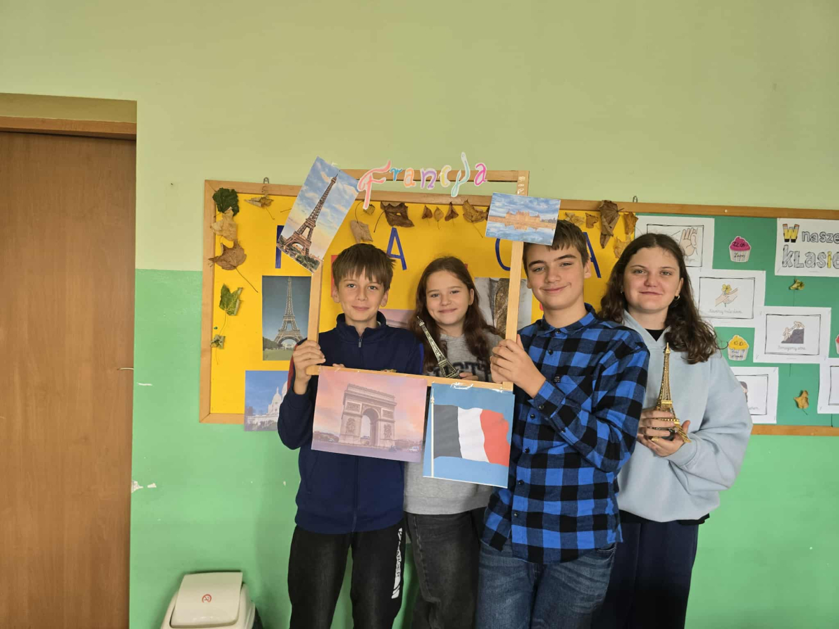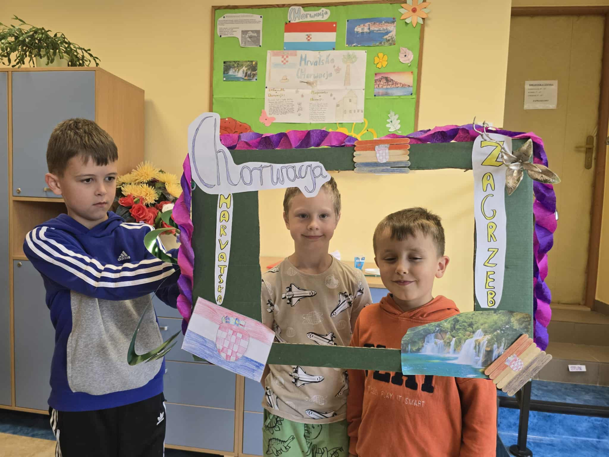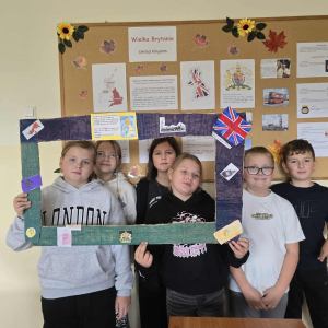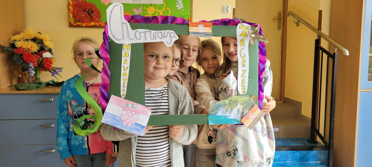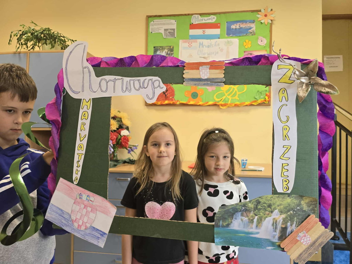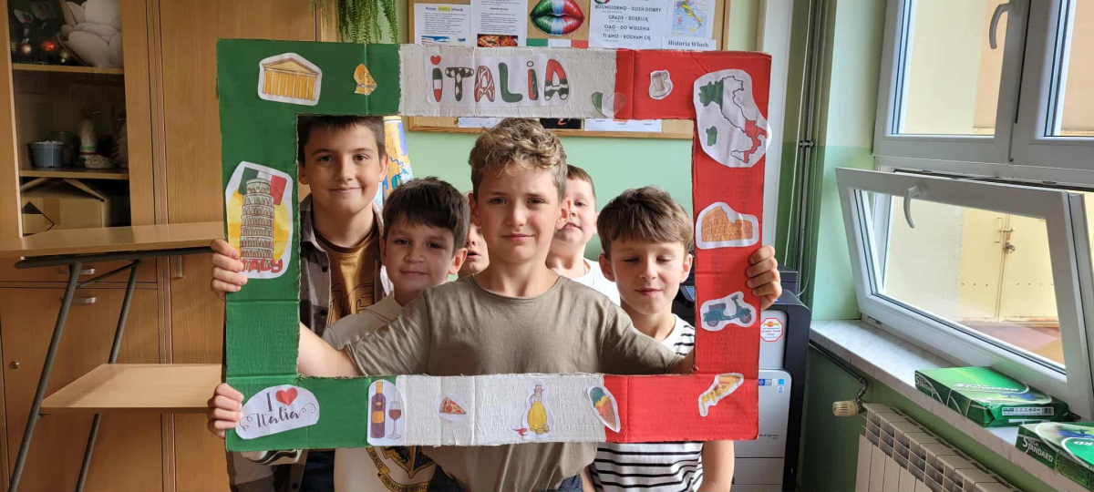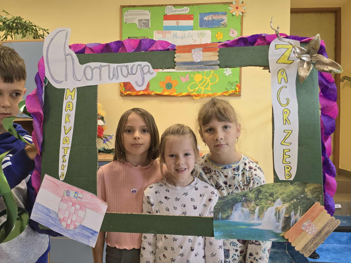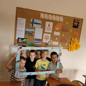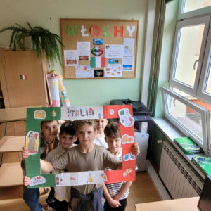 Dnia 6 października w naszej szkole odbyło się rozdanie nagród uczniom klas IV-VIII, którzy wzięli udział w konkursie zorganizowanym przez nauczycieli języków obcych – Panią Małgorzatę Czesak i Panią Klaudię Rąpałę. W związku z obchodami Europejskiego Dnia Języków Obcych, uczniowie klas starszych mieli przygotować dekoracje klasowe oraz ramki do zdjęć związane z wylosowanym przez nich krajem. Dodatkowo, podpisywali przedmioty w klasie w języku danego państwa. Tak oto klasa VII, która zajęła I miejsce w konkursie, pracowała nad dekoracjami dotyczącymi Włoch, klasa IV – druga na podium – zaprezentowała Wielką Brytanię, a klasa V – III miejsce na podium – Chorwację. Pozostałe klasy zapoznały nas z takimi krajami, jak Finlandia oraz Francja. Klasy młodsze natomiast zapoznano z flagami krajów europejskich, a następnie poproszono o namalowanie jednej z nich. Co więcej, uczniowie klas młodszych odbyli w tym dniu „wycieczkę po Europie”. To znaczy, że odwiedzili oni kraje, na temat których dekoracje przygotowali ich starsi koledzy i koleżanki.