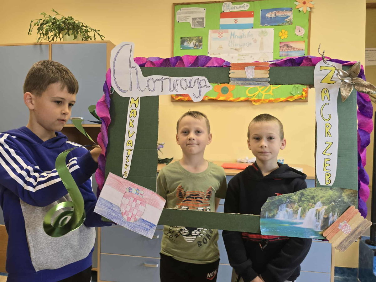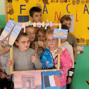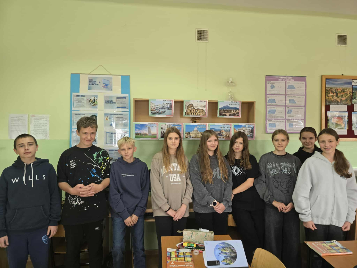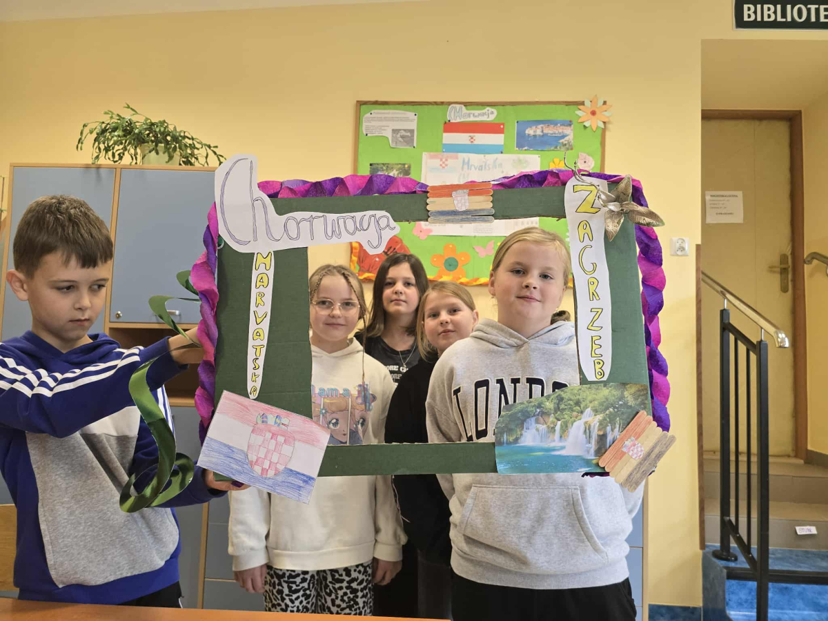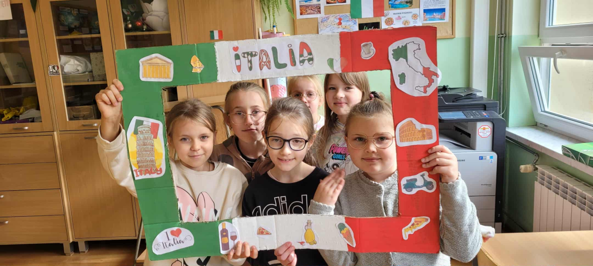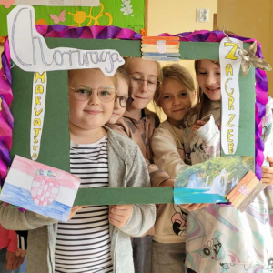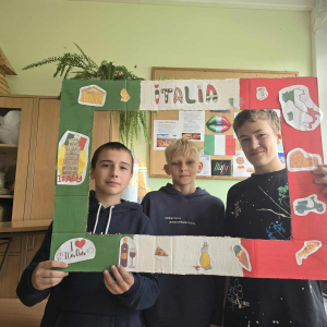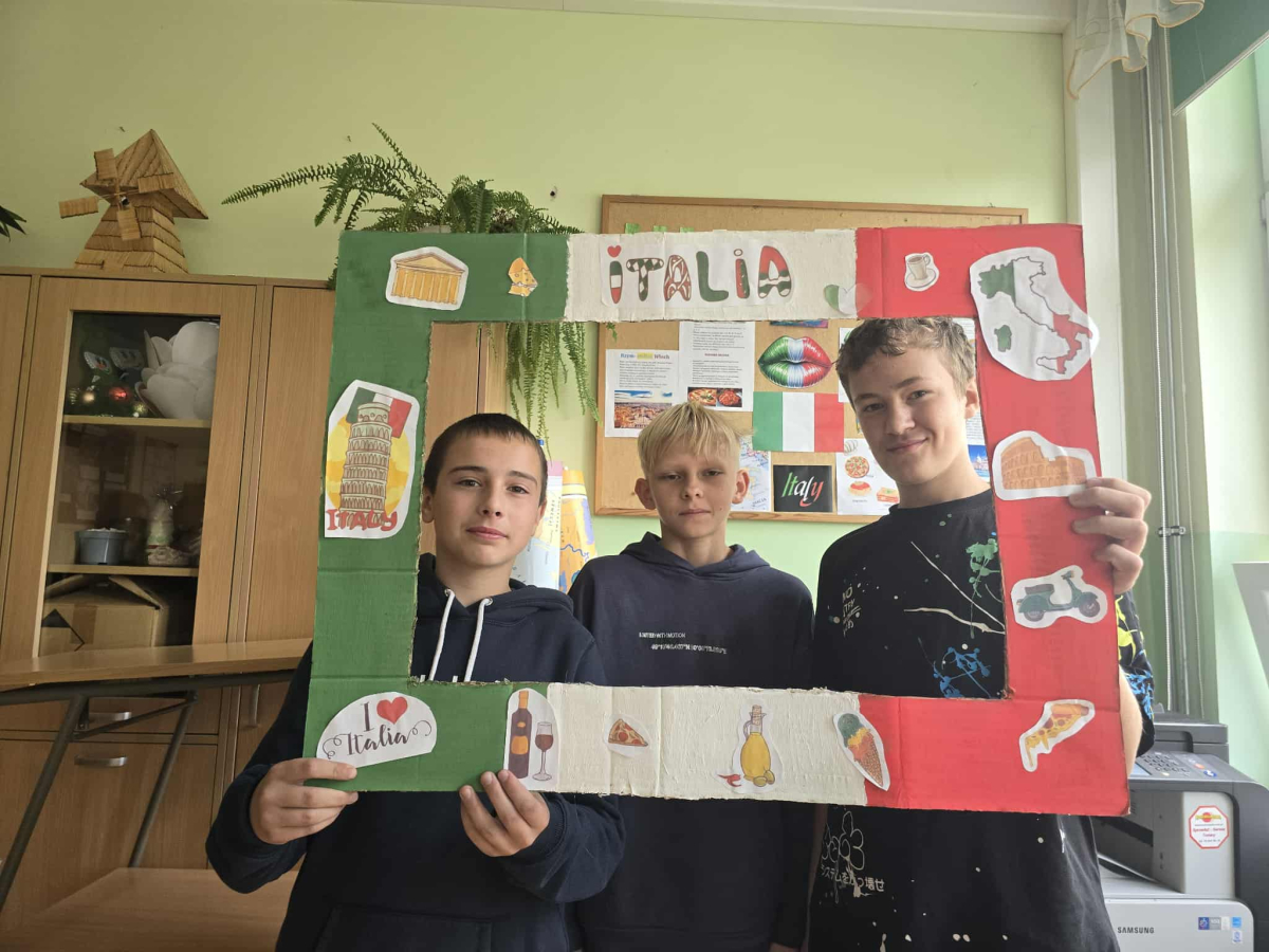 Dnia 6 października w naszej szkole odbyło się rozdanie nagród uczniom klas IV-VIII, którzy wzięli udział w konkursie zorganizowanym przez nauczycieli języków obcych – Panią Małgorzatę Czesak i Panią Klaudię Rąpałę. W związku z obchodami Europejskiego Dnia Języków Obcych, uczniowie klas starszych mieli przygotować dekoracje klasowe oraz ramki do zdjęć związane z wylosowanym przez nich krajem. Dodatkowo, podpisywali przedmioty w klasie w języku danego państwa. Tak oto klasa VII, która zajęła I miejsce w konkursie, pracowała nad dekoracjami dotyczącymi Włoch, klasa IV – druga na podium – zaprezentowała Wielką Brytanię, a klasa V – III miejsce na podium – Chorwację. Pozostałe klasy zapoznały nas z takimi krajami, jak Finlandia oraz Francja. Klasy młodsze natomiast zapoznano z flagami krajów europejskich, a następnie poproszono o namalowanie jednej z nich. Co więcej, uczniowie klas młodszych odbyli w tym dniu „wycieczkę po Europie”. To znaczy, że odwiedzili oni kraje, na temat których dekoracje przygotowali ich starsi koledzy i koleżanki.