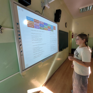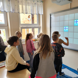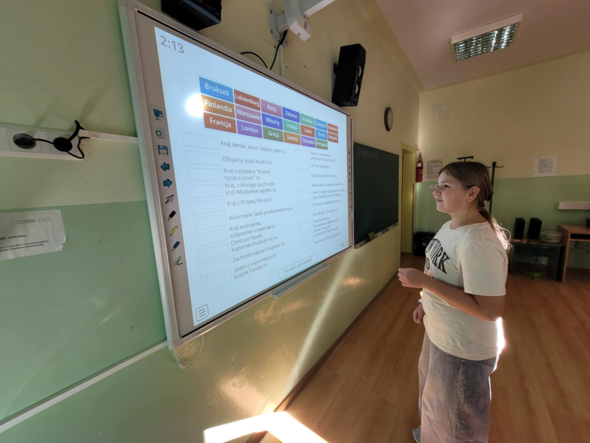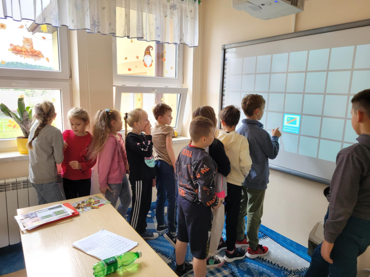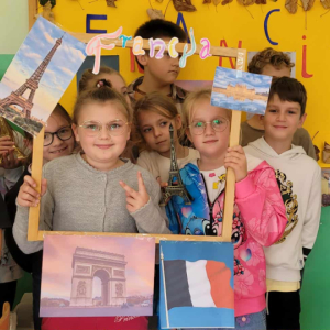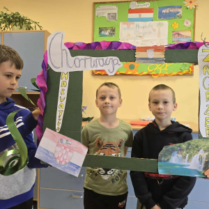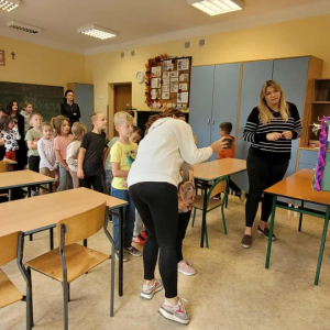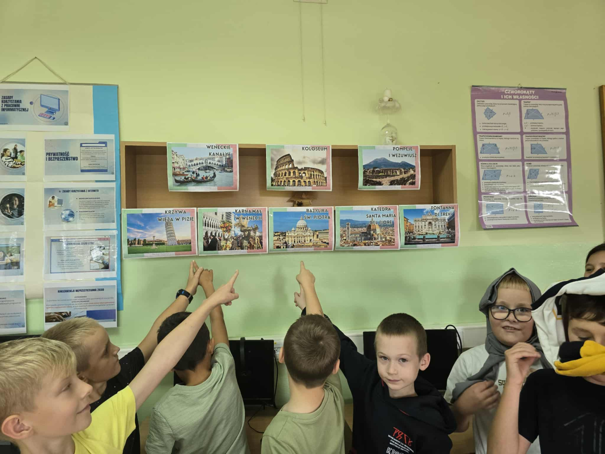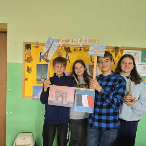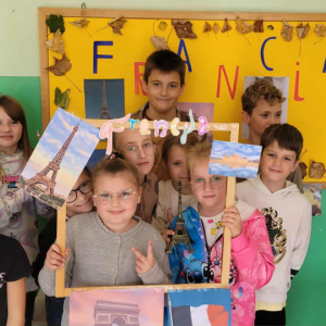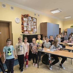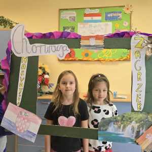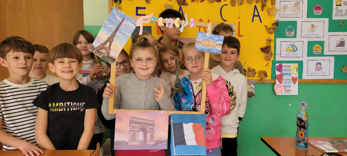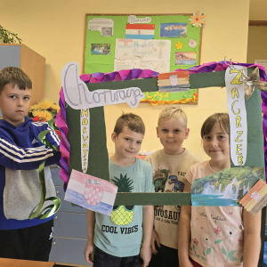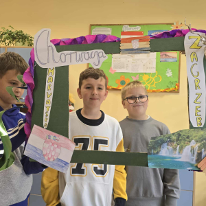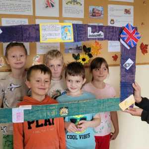 Dnia 6 października w naszej szkole odbyło się rozdanie nagród uczniom klas IV-VIII, którzy wzięli udział w konkursie zorganizowanym przez nauczycieli języków obcych – Panią Małgorzatę Czesak i Panią Klaudię Rąpałę. W związku z obchodami Europejskiego Dnia Języków Obcych, uczniowie klas starszych mieli przygotować dekoracje klasowe oraz ramki do zdjęć związane z wylosowanym przez nich krajem. Dodatkowo, podpisywali przedmioty w klasie w języku danego państwa. Tak oto klasa VII, która zajęła I miejsce w konkursie, pracowała nad dekoracjami dotyczącymi Włoch, klasa IV – druga na podium – zaprezentowała Wielką Brytanię, a klasa V – III miejsce na podium – Chorwację. Pozostałe klasy zapoznały nas z takimi krajami, jak Finlandia oraz Francja. Klasy młodsze natomiast zapoznano z flagami krajów europejskich, a następnie poproszono o namalowanie jednej z nich. Co więcej, uczniowie klas młodszych odbyli w tym dniu „wycieczkę po Europie”. To znaczy, że odwiedzili oni kraje, na temat których dekoracje przygotowali ich starsi koledzy i koleżanki.