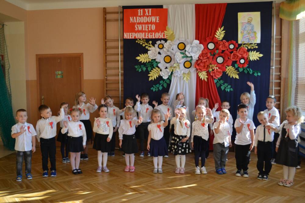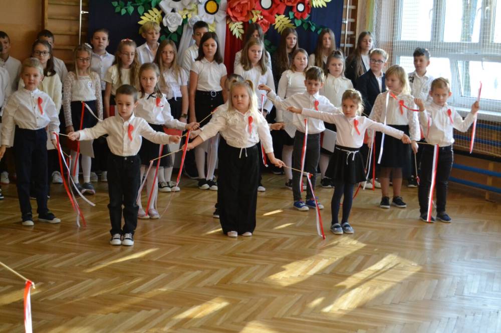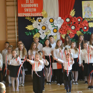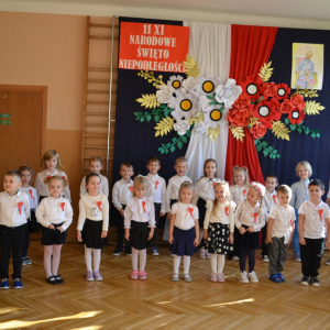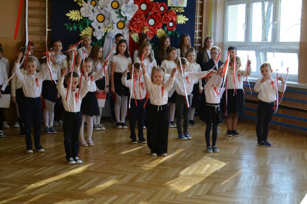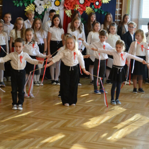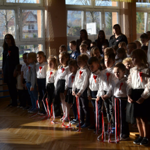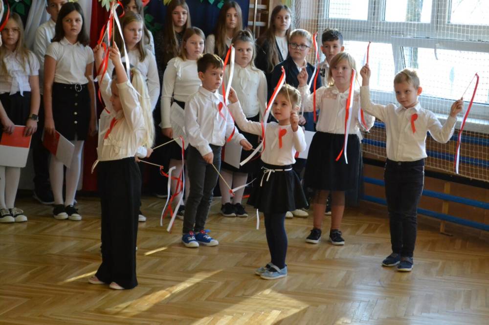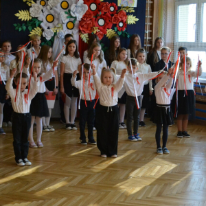 Zaczęliśmy już w czwartek uroczystą Akademią z okazji Święta Niepodległości podczas której dzieci z klasy ósmej oraz nasz szkolny Chór przeprowadziły nas wojskową pieśnią przez najważniejsze momenty całego procesu odzyskiwania niepodległości przez Polskę. Przedszkolaki natomiast zatańczyły z szarfami do melodii znanej nam wszystkim z serialu „Dom”. To był niezwykle wzruszający koncert…