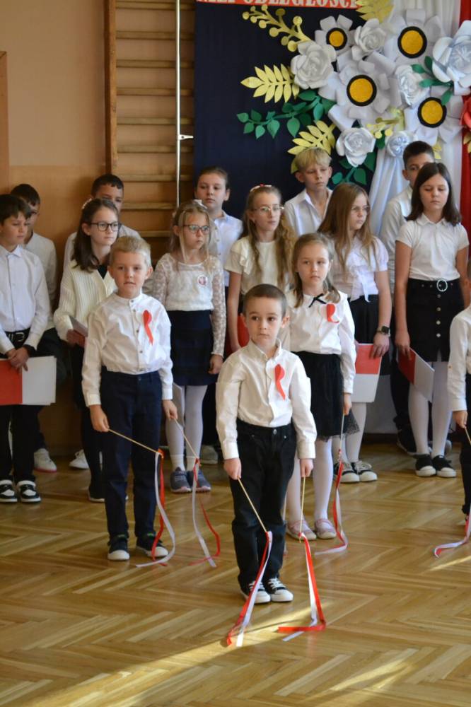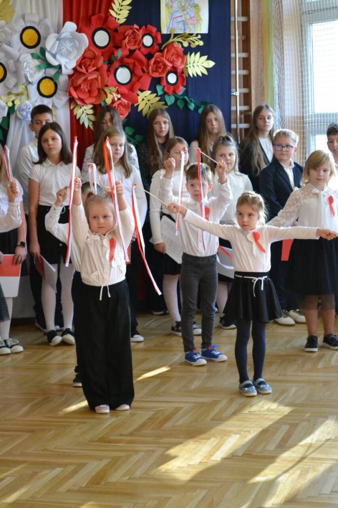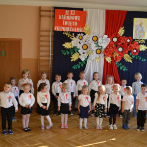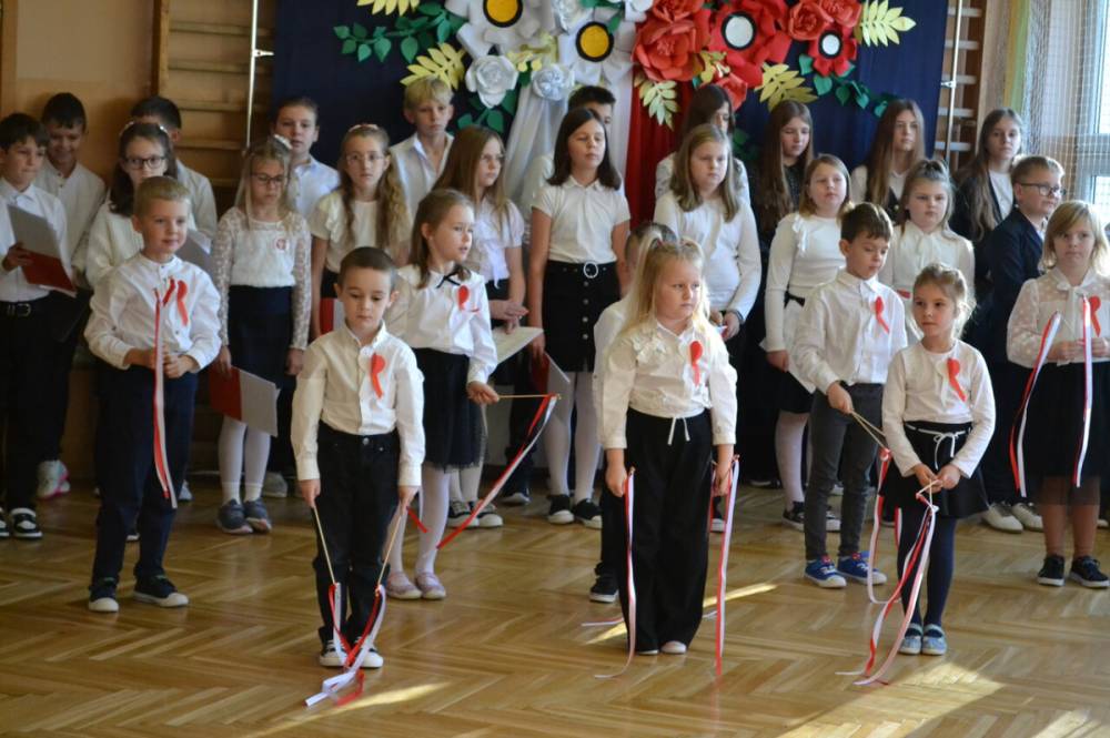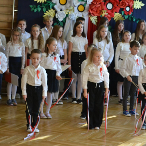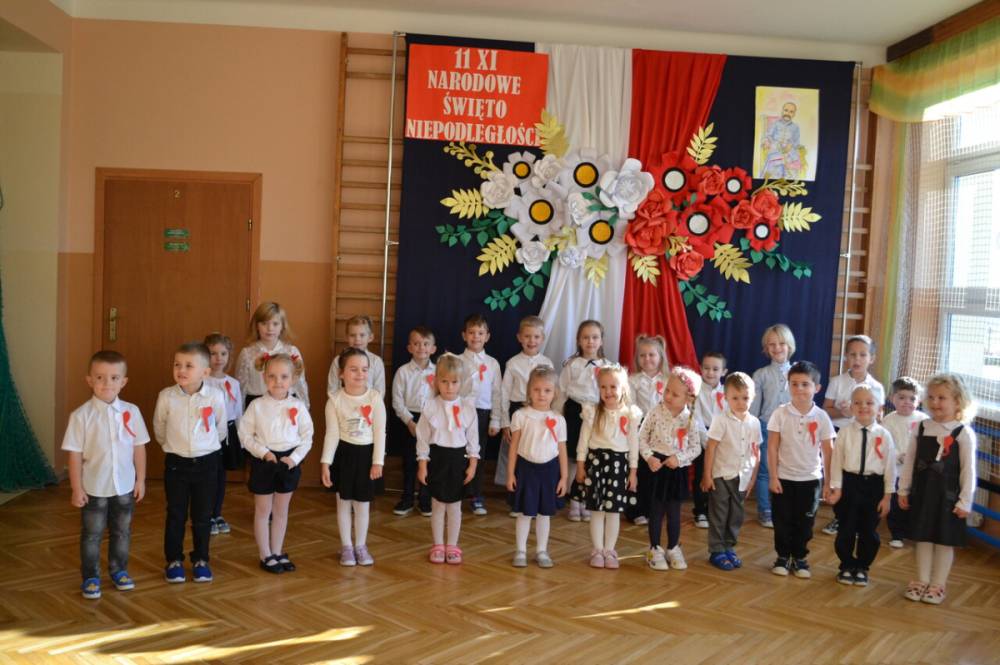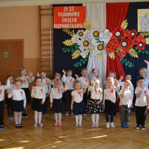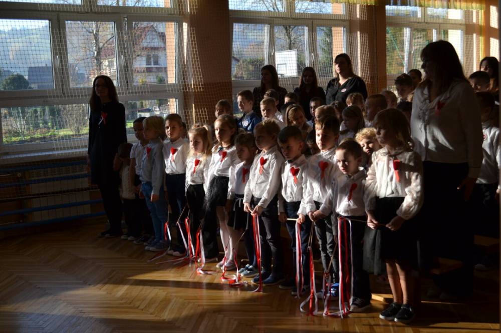 Zaczęliśmy już w czwartek uroczystą Akademią z okazji Święta Niepodległości podczas której dzieci z klasy ósmej oraz nasz szkolny Chór przeprowadziły nas wojskową pieśnią przez najważniejsze momenty całego procesu odzyskiwania niepodległości przez Polskę. Przedszkolaki natomiast zatańczyły z szarfami do melodii znanej nam wszystkim z serialu „Dom”. To był niezwykle wzruszający koncert…