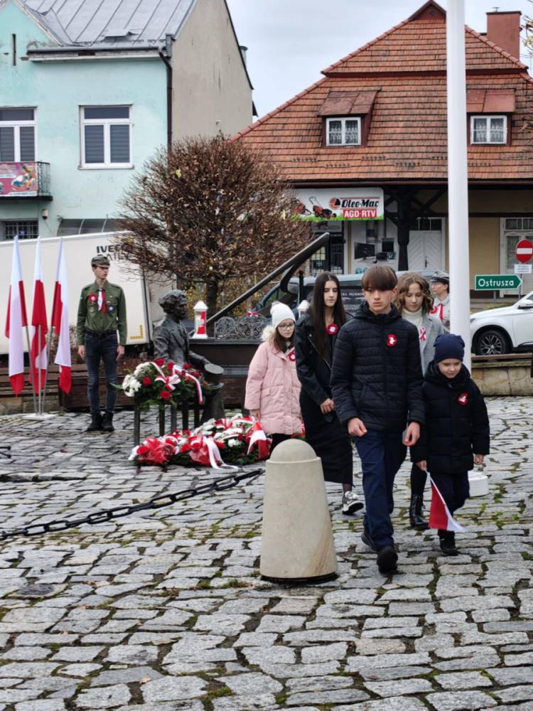 Na tym jednak nie koniec bowiem podczas uroczystości patriotycznych na ciężkowickim rynku nasza szkolno-przedszkolna delegacja złożyła okolicznościową wiązankę.